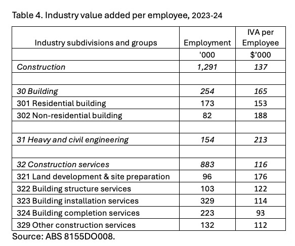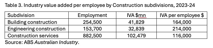 Table 3. Industry value added per employee by Construction subdivisions, 2023-24