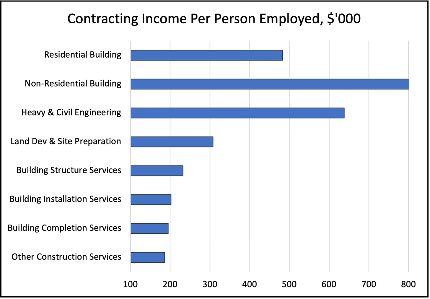 Note: Includes contracting and subcontracting income, excludes non-construction income from sales of land and goods.