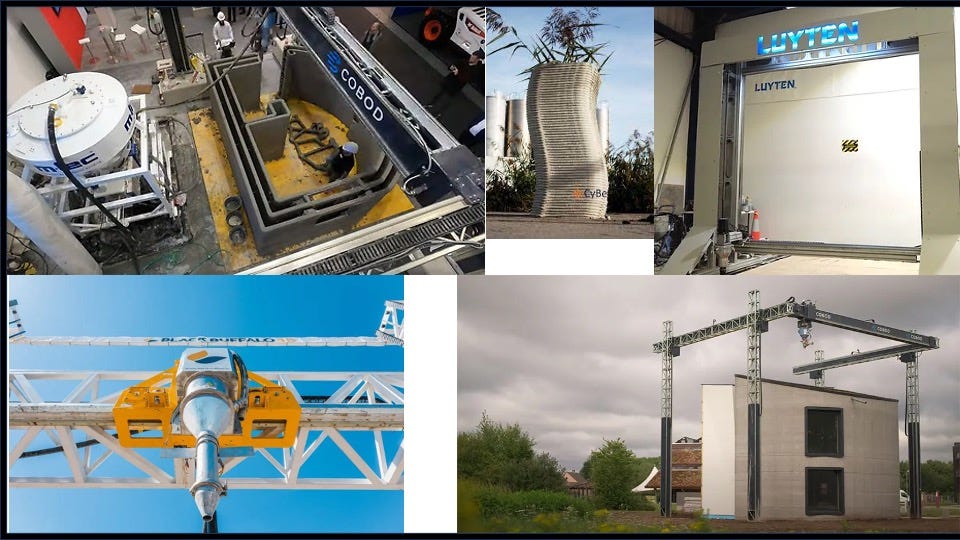 Clockwise from top left: COBOD, Cybe, Luyten, Kamp, Black Buffalo