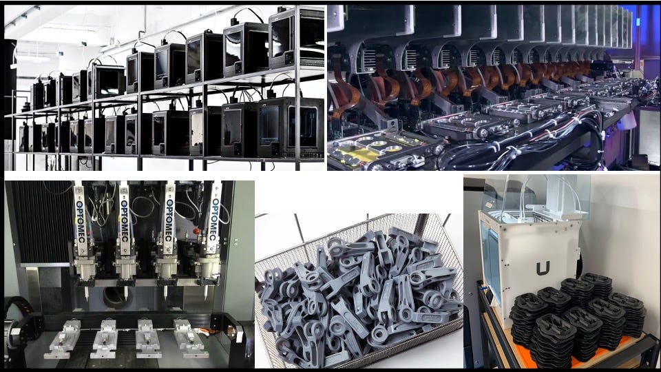 Clockwise from top left: Zortrax, 3D Systems, Design 3D Print, Formlabs, Optomec